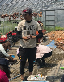 2018年にベジモあいちの農園での研修を経て、ベジモひろしまファームの農業担当へ。現ベジモファームひろしまスタッフ